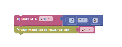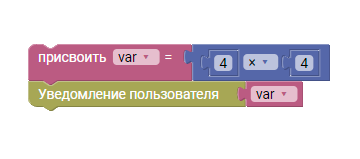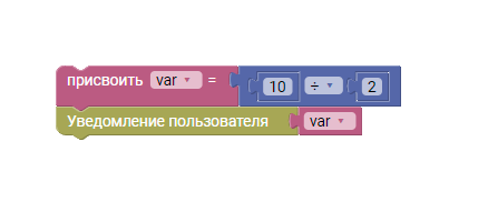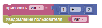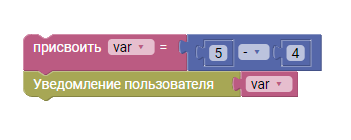- Уведомление пользователя с результатом арифметической операции в переменной.