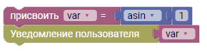 В данном примере показывается работа блока Тригонометрические операции при вычислении арксинуса угла.