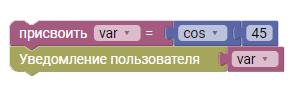 - Уведомление пользователя с результатом тригонометрической операции в переменной.