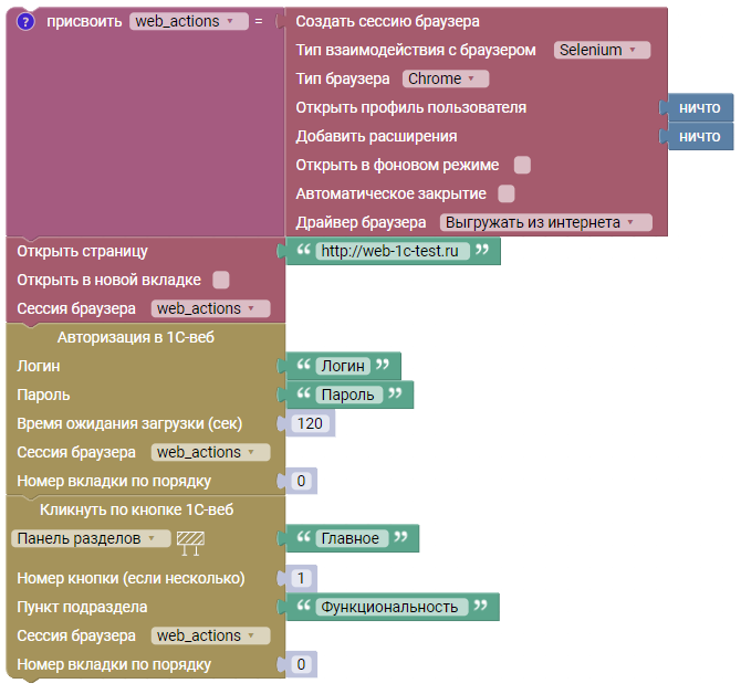 Блок позволяет позволяет выполнять клики по кнопкам 1С-веб клиента.