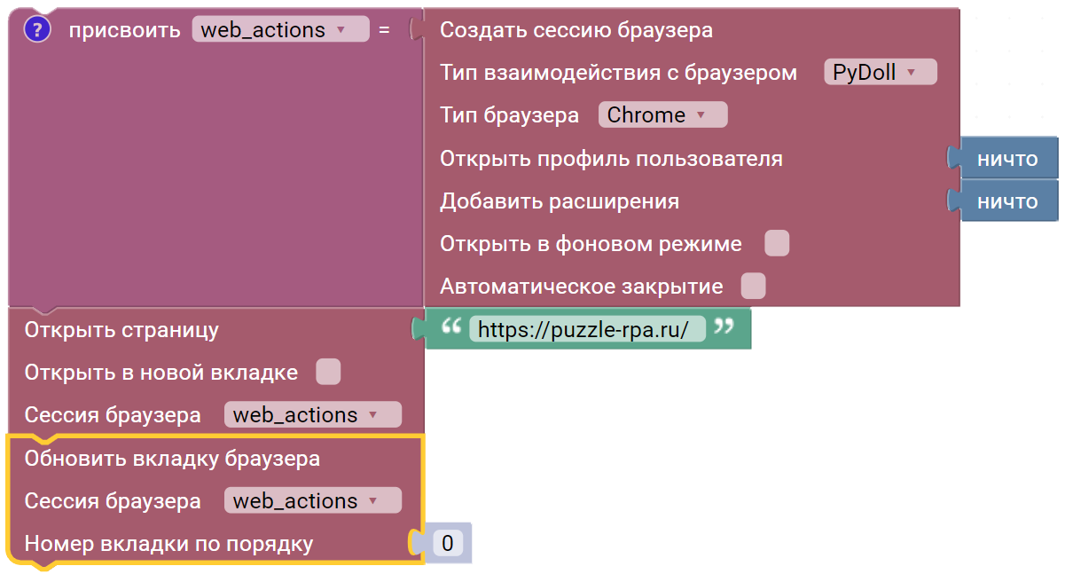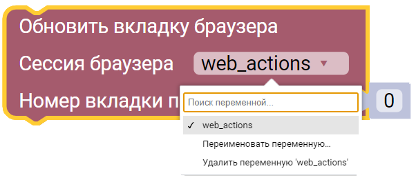 - Номер вкладки по порядку - порядковый номер вкладки по порядку, в которой необходимо выполнить действие.