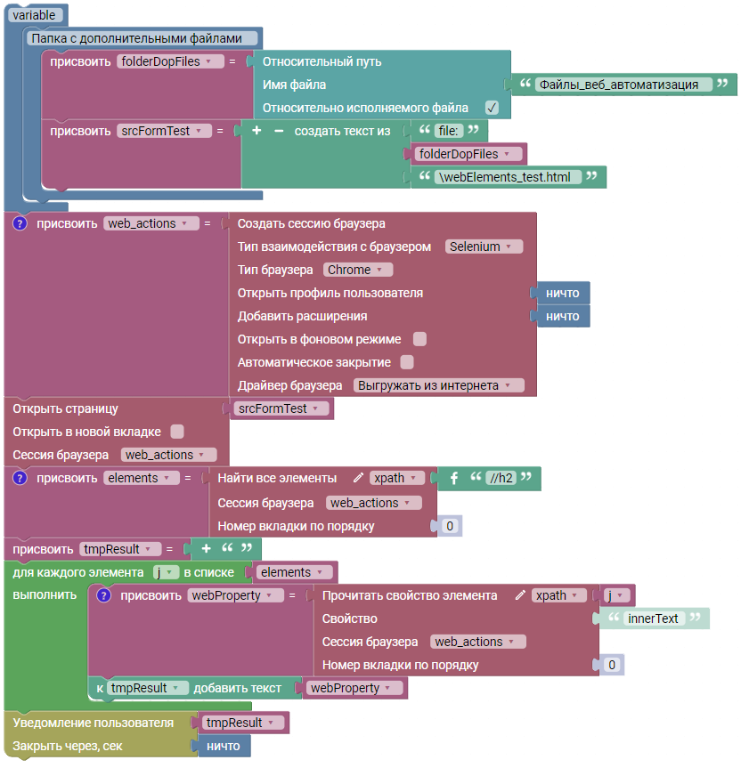 Параметры подключения - выбор способа идентификации и поиска веб-элементов на странице;