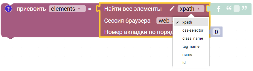 - id — для поиска веб-элемента используется атрибут id элемента;