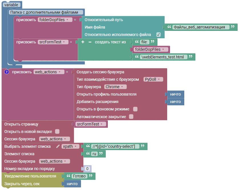 Параметры подключения - выбор способа идентификации и поиска веб-элементов на странице;