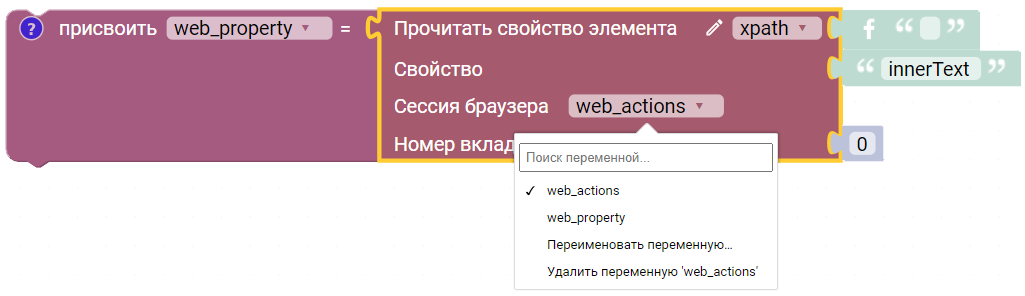 Номер вкладки по порядку - порядковый номер вкладки по порядку, в которой необходимо выполнить действие.
