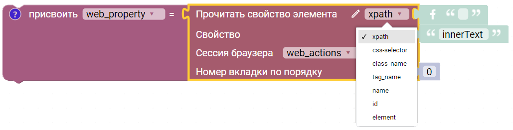 - xpath — для поиска веб-элемента используется xpath;