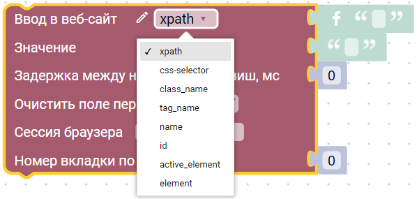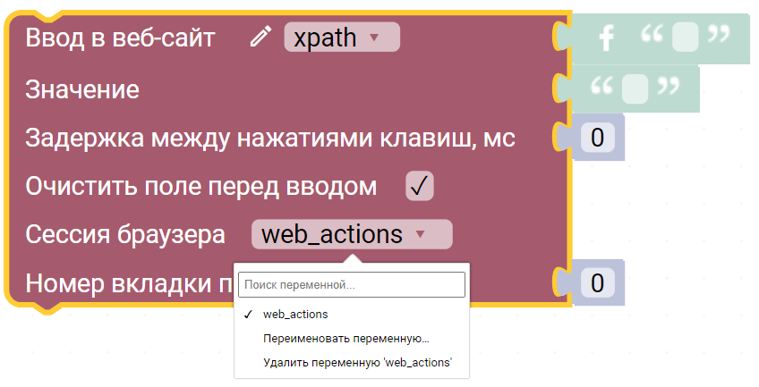 Очистить поле перед вводом - очистить поле, в которое робот записывает значение, перед вводом.