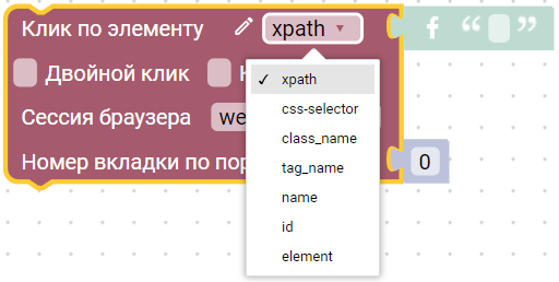 Параметры подключения - выбор способа идентификации и поиска веб-элементов на странице;