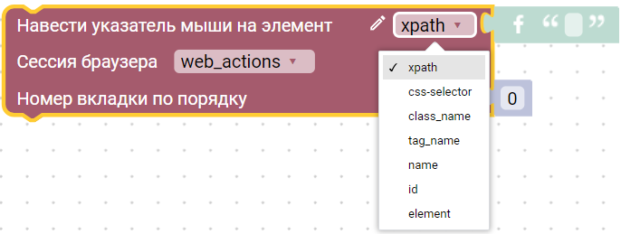 Параметры подключения - выбор способа идентификации и поиска веб-элементов на странице;