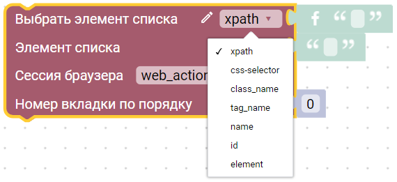 Параметры подключения - выбор способа идентификации и поиска веб-элементов на странице;